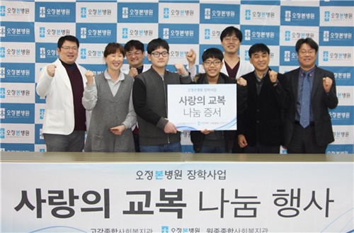 '사랑의 교복' 나눔은 오정본병원이 우리 미래에 투자하는 장학사업이야말로
