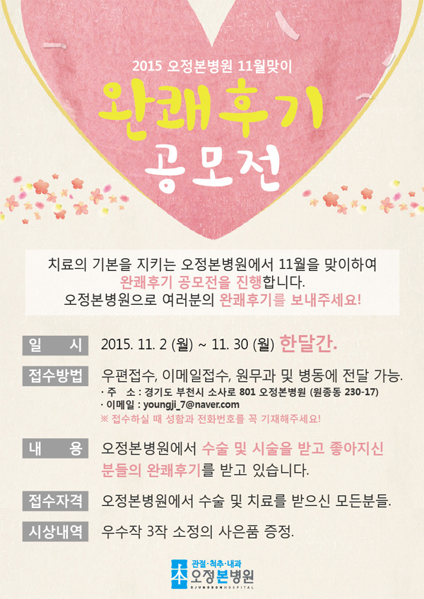 <병원소식> 완쾌후기 공모전을 진행합니다 !