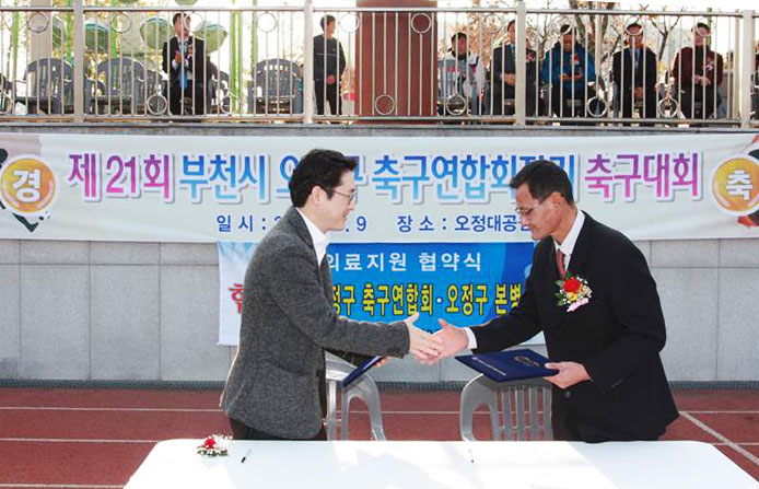 제21회 부천시 오정구 축구연합회장기 축구대회 개막에 앞서 진행된 협약식에는