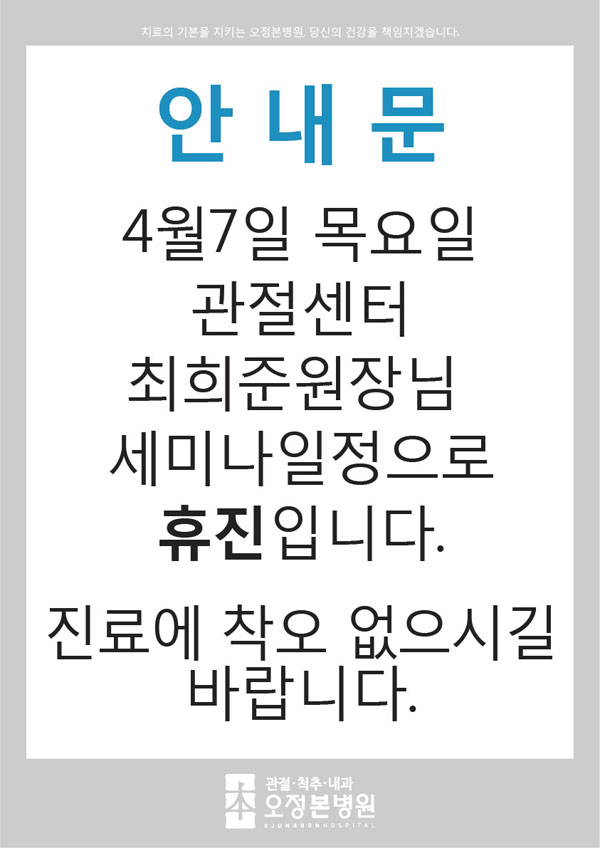 <공지사항> 4월7일 최희준원장 휴진안내