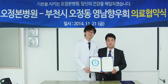 11월21일 오정본병원은 부천시 오정구 영남향우회와 업무협약을 체결했습니다.