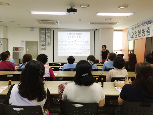 노래교실에는 환자분들 및 지역주민 30여명이 참석하여