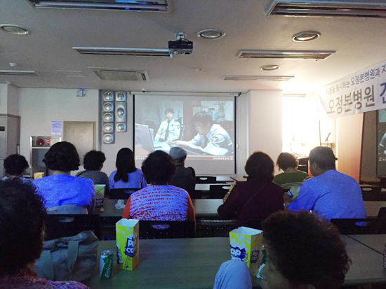 입원하신 환자분들과 지역주민을 위하여 영화 상영을 하였습니다.
