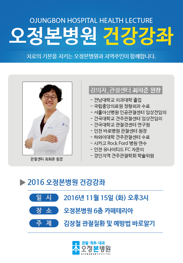 관절센터 최희준원장 : 겨울 김장철 관절질환 및 예방법 바로알기 건강강좌 개최