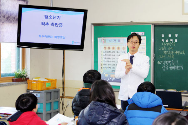 척추측만증 교실은 학생들에게 척추 질환에 대한 정보를 제공하고