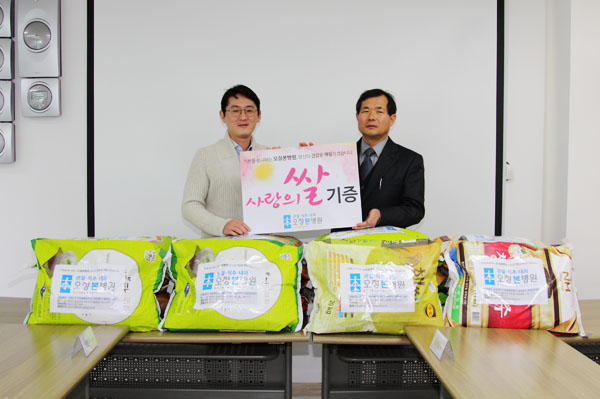 오정본병원은 개원기념식에 축하화환 대신에 쌀을 기부받았습니다.