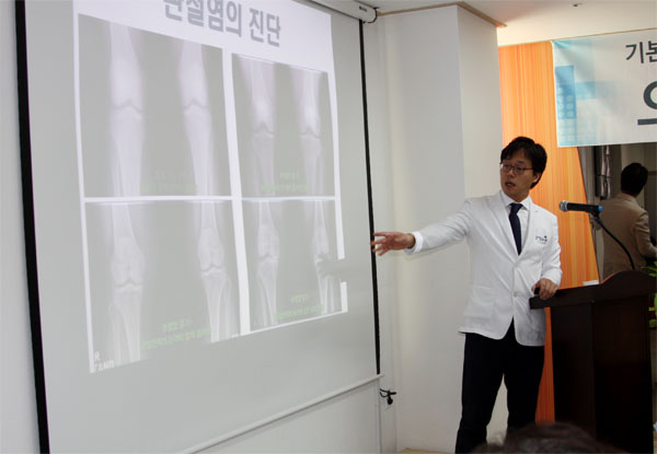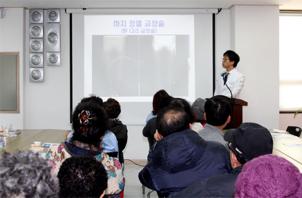 이날 관절센터 최희준 원장이 "동절기 무릎질환 발생과 예방법" 에 대하여 강의를 하였습니다