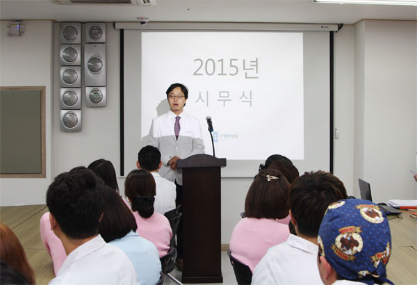 2015년을 맞이하여 1월 2일 오정본병원 6층에서 시무식을 진행하였습니다.