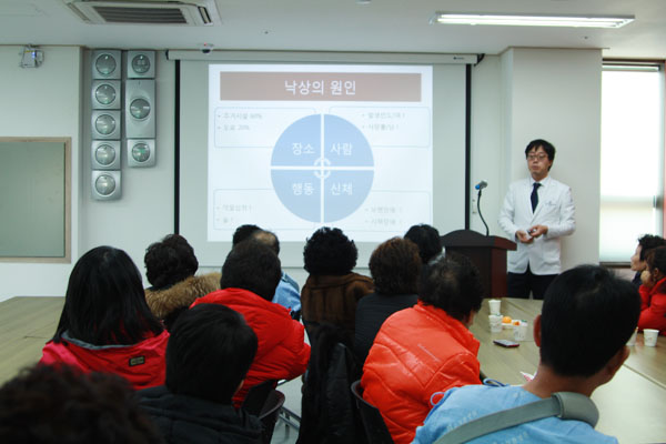 떡국을 드신후에는 최희준 병원장의 겨울철 낙상사고 예방을 위한 강의가 20여분간 진행되었습니다.