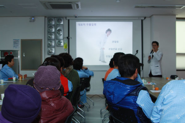 이날 관절센터 신영석원장이 "무릎관절염 원인과 치료" 에 대하여 강의를 하였습니다