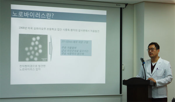 이날 내과센터 박현준원장이 "노로바이러스 바로알기" 에 대하여 강의를 하였습니다