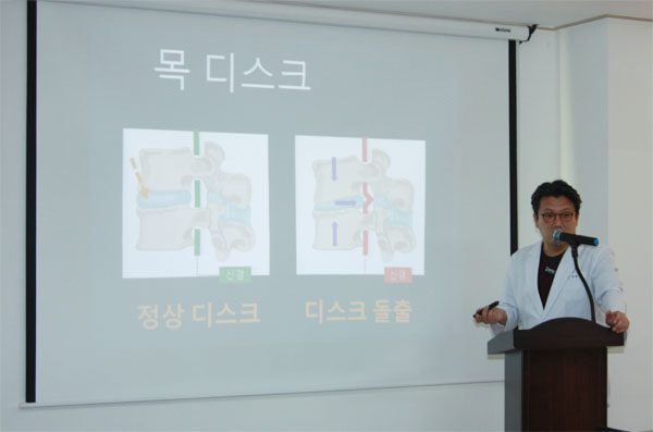 이날 박창현원장님의 "목디스크 바로알기" 에 대하여 강의를 하였습니다