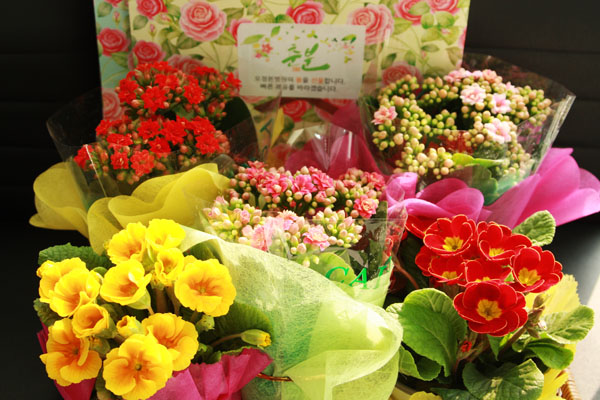 오정본병원을 봄을 맞이하여 환자분들에게 꽃을 나눠드렸습니다.