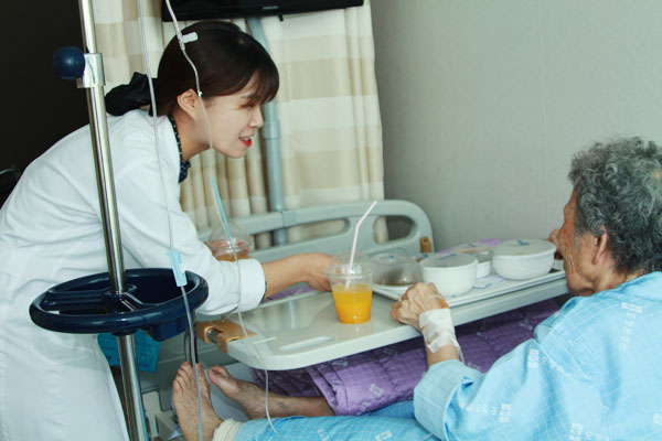 맛있는 단호박식혜를 받으신 환자분들의 입가에서는 웃음이 끊이질 않았습니다.