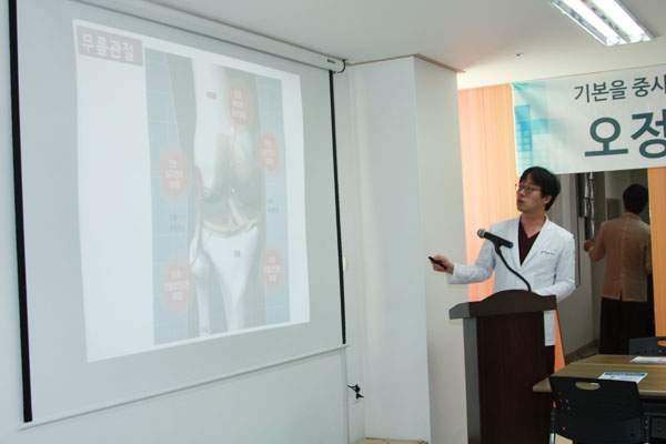 이날은 관절센터 최희준 원장의 "휜다리와 퇴행성관절염의 연관성" 에 대하여 강의를 하였습니다