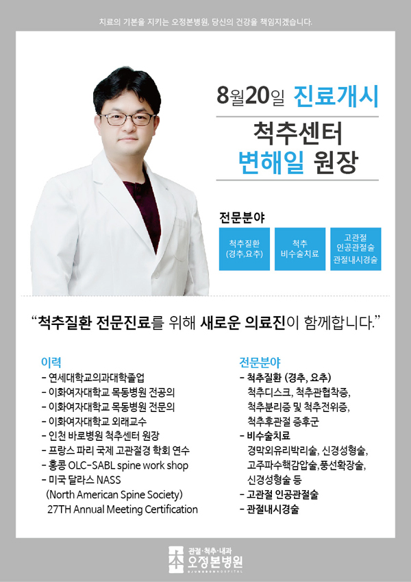 <병원소식> 척추센터 변해일 원장 8월 20일 진료개시