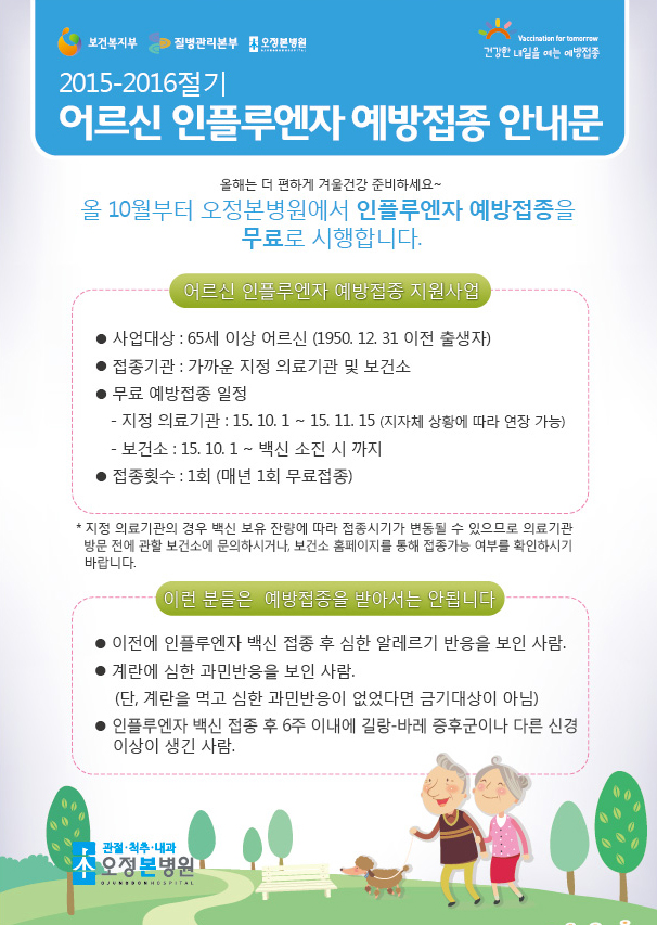 <병원소식> 어르신 인플루엔자 예방접종 안내