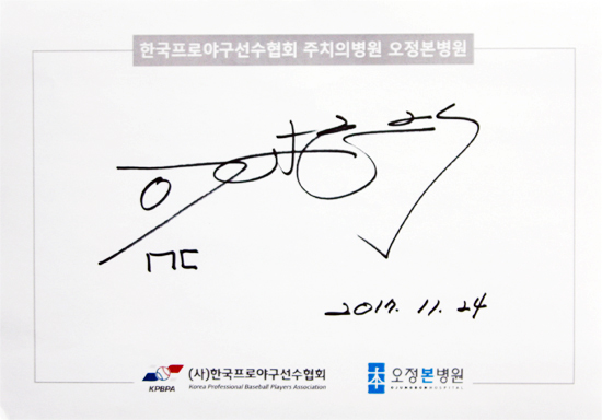 2017년 11월 24일 (금) NC다이노스 이호준 선수가 관절센터 최희준 원장에게 진료를 받았습니다.오정본병원은 한국프로야구선수협회 주치의 병원으로서선수들의 건강을 최우선으로 생각하는 병원이 되겠습니다.